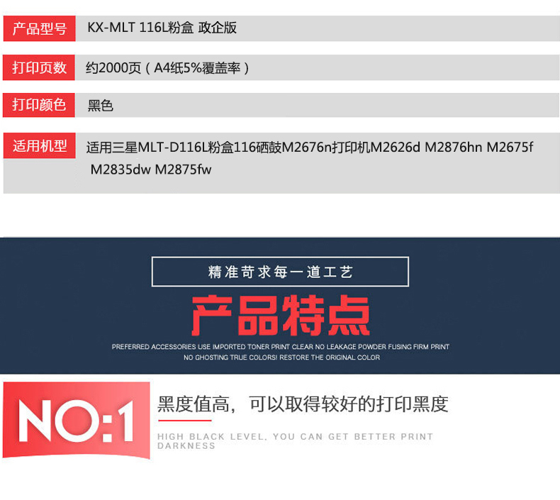 凱欣KX-MLT 116L 適用三星MLT-D116L粉盒116硒鼓M2676n打印機(jī)M2626d M2876hn M2675f M2835dw M2875fw M2825dw M2826nd 全國(guó)統(tǒng)一價(jià):295元