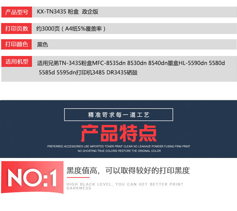 凱欣KX-TN3435 適用兄弟TN-3435粉盒MFC-8535dn 8530dn 8540dn墨盒HL-5590dn 5580d 5585d 5595dn打印機(jī)3485 DR3435硒鼓 全國(guó)統(tǒng)一價(jià):286元